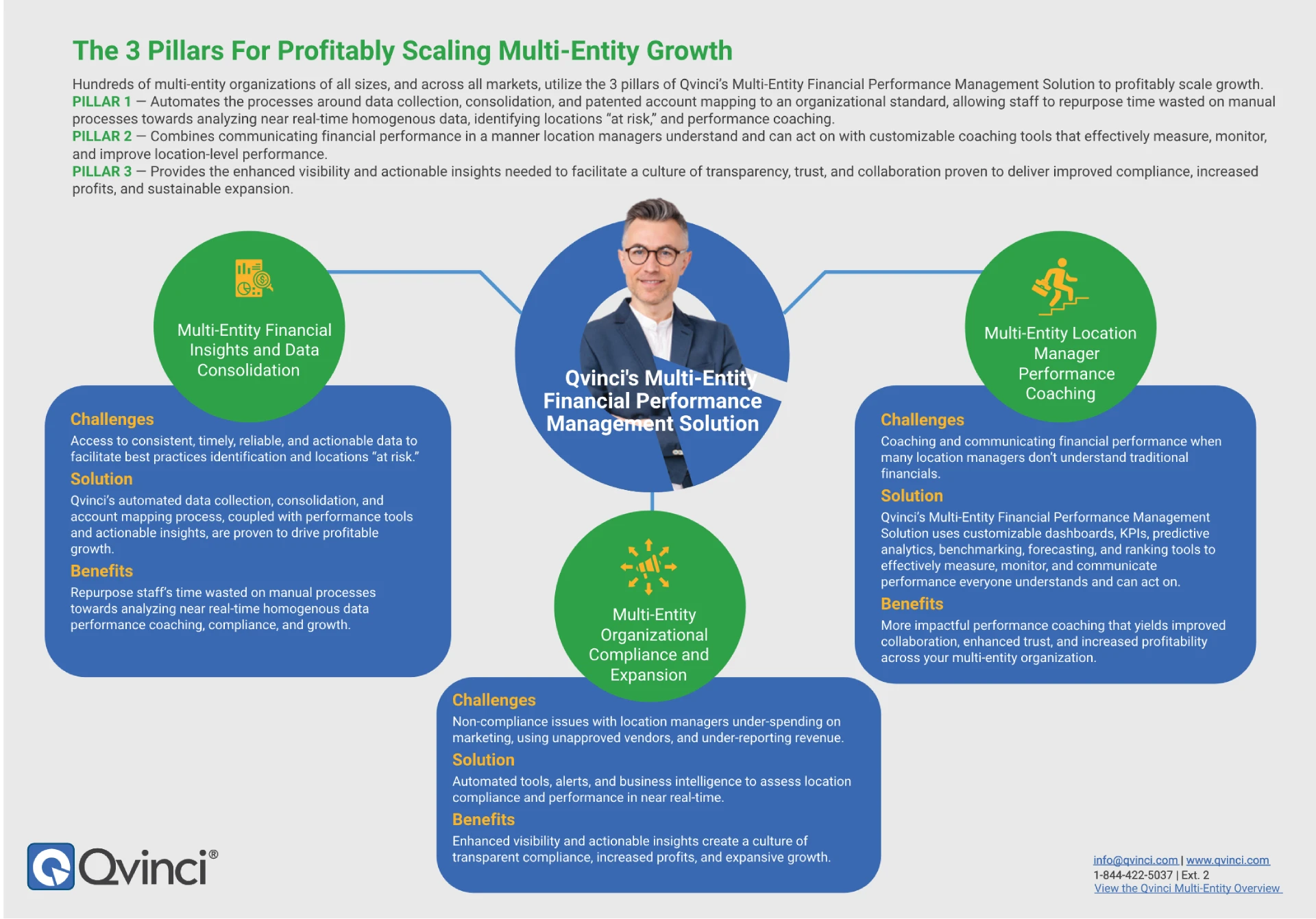 Download your free copy of “How Multi-Entity Organizations Drive Revenue and Profitability” to learn how Qvinci provides multi-entity for-profit and non-profit organizations with a cost-effective, ERP-like solution that delivers automated location-level data collection, consolidation, and mapping along with customizable financial reporting, workflow management, business intelligence, and predictive analytics.
