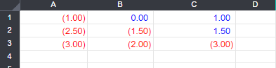 For example, if you need a format where negative numbers are red surrounded by parenthesis, and positive numbers are blue, you would select the cells to format, click Format Customizer, then enter the following format string: