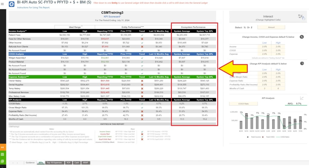 - Switch from dollar values to percentages or different analysis perspectives, such as viewing entities at risk or identifying best performers.