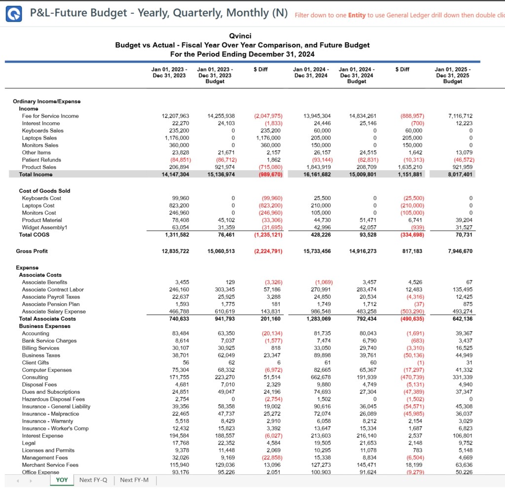 5) Qvinci Budgets Including Future Budgeting – Import Excel-based budgets to use with new templates like Actual + Budget + Variance.