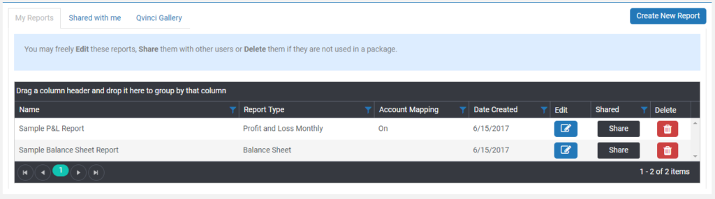 The Account Mapping column means you will be able to easily tell if a template was built using the Standard Chart of Accounts (mapping on) or the Native Chart of Accounts (mapping off). This means you do not have to include the mapping settings in the name of your report.