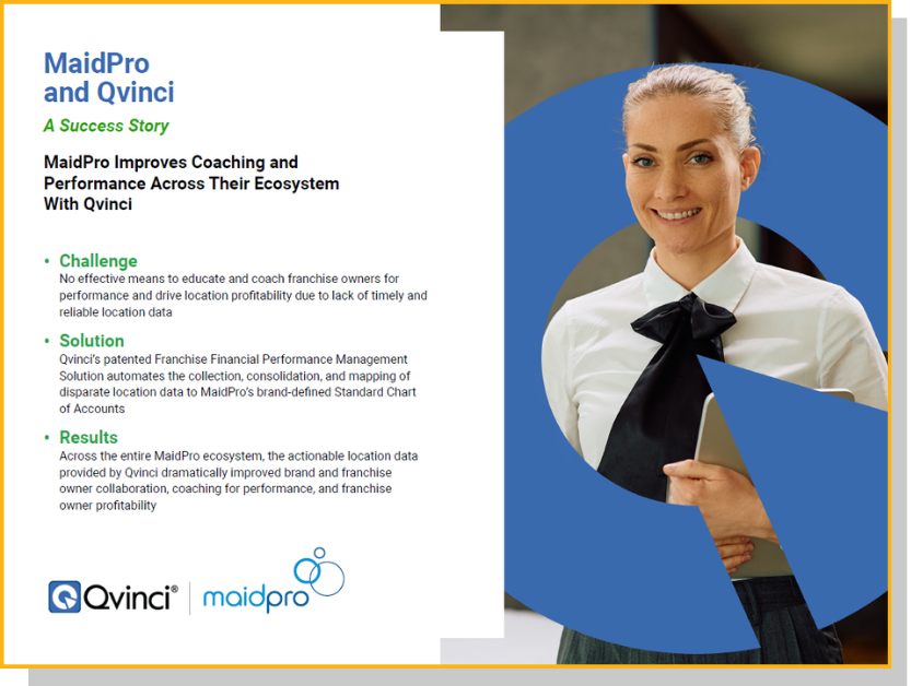 The actionable data contained in Qvinci’s reporting allows MaidPro to educate our business owners on many different levels. There were owners who needed assistance understanding the difference between a Balance Sheet and a Profit and Loss Statement, owners who did not know how to maintain basic bookkeeping, and others who had no books at all. Using Qvinci, we can provide the educational insights that the owners need and point others in the direction of a bookkeeping service, while providing specific operational adjustments to others.