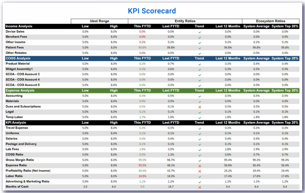 - Trended comparisons of KPIs month-over-month or year-over-year